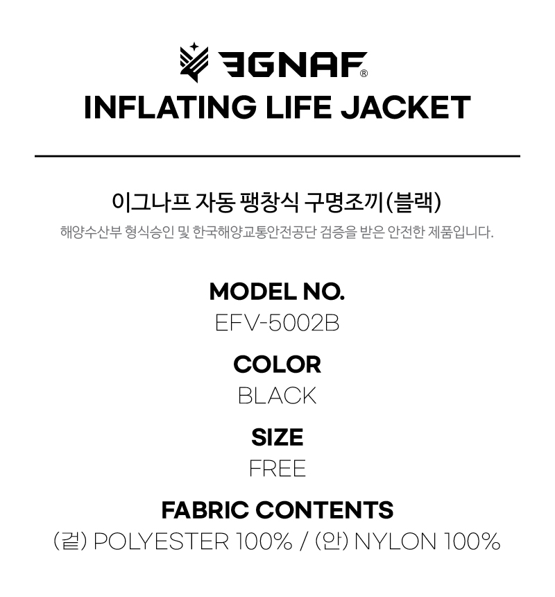 EFV-5002B 팽창식 구명조끼(블랙) / 해양수산부 승인